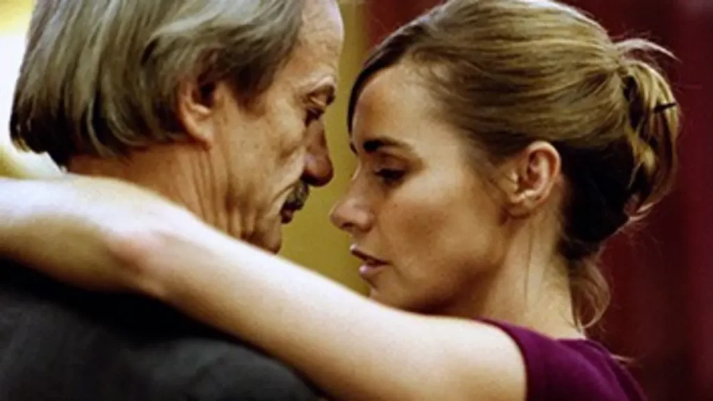 « Je ne suis pas là pour être aimé » : un titre en forme d’antiphrase, qui suggère par-delà la résignation ou la peur de l’amour le désir d’être enfin aimé pour apprendre à s’aimer. Comme Un autre monde en appelle, par-delà l’ultra-libéralisme destructeur de notre époque, à une entreprise plus humaine, au respect des travailleurs. C’est ainsi que va se produire pour Jean-Claude une prise de conscience de l’absurdité kafkaïenne de cette vie sans amour ni même empathie, à moins que ce ne soit le monde autour de lui qui l’appelle à sortir de lui-même, à vivre enfin ! Quelques pas lourds, machinaux, dans son cabinet, une fenêtre ouverte, des silhouettes graciles perçues de l’autre côté de la rue, un cours de tango auquel Jean-Claude décide de s’inscrire et où il rencontre Françoise, jouée par Anne Consigny, lumineuse de tendresse souriante et d’inquiétude altruiste, son premier grand rôle au cinéma qui lui vaudra une nomination aux Césars 2006 dans la catégorie « meilleure actrice ». elle envisageait même de changer de métier et ce film l’a relancée ! Françoise, conseillère d’orientation timide dont la vie semble pourtant prendre un tournant décisif avec son mariage imminent, tombe amoureuse de cet homme taciturne et tourmenté qu’elle retrouve régulièrement pour danser le tango : elle lui redonne goût à la vie, comme à une dernière chance, même si un sourire éclaire rarement son visage, tant il semble surpris d’être aimé – et elle-même a besoin de sa médiation pour prendre conscience de ses vrais sentiments. Deux « coeurs simples », deux « coeurs en hiver » qui se dégèlent, pour parodier Flaubert et Claude Sautet. Si le violon et le piano suscitent le sentiment amoureux respectivement dans Mademoiselle Chambon et Hors-saison, c’est ici la danse qui rapproche et unit les personnages : l’une des scènes les plus émouvantes est celle du spectacle de tango, Rouge désir, auxquels ils assistent éblouis. Le cinéaste, qui a travaillé avec 2 musiciens de Gotan Project – Eduardo Makaroff et Christoph H. Müller créateurs d’un thème musical spécifique pour le film – effleure aussi la satire sociale dans deux scènes marquantes : le choix de la robe de mariée et une longue et houleuse discussion sur le plan de table proposé par la mère de Françoise, dont la vanité et le formalisme font pleurer en silence la future mariée…Elle prend conscience qu’elle n’aime plus (ou pas assez) son futur mari et se libère, comme Jean-Claude s’émancipe enfin de l’autoritarisme acariâtre et humiliant de son père en explosant de colère pour lui dire sa lassitude, son exaspération devant son sale caractère, sa rage aussi de n’avoir jamais été valorisé, d’avoir vu toutes ses coupes gagnées au tennis disparaître une à une ! Du moins le croit-il jusqu’à l’ouverture d’une armoire après l’enterrement de son père… Triple libération même puisque Jean-Claude invite son fils, jusqu’ici enfermé dans une compulsion de répétition générationnelle, à quitter ce métier où non seulement il ne s’épanouit pas mais se nourrit surtout du malheur des autres !!