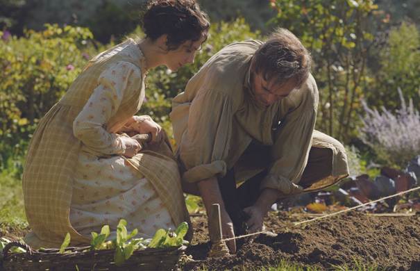 Les allées régulières d’un potager, le geste lent et sûr de Jean-Pierre Darroussin plantant ses légumes, le crépitement d’un feu de cheminée, le crissement dans la boue des bottes de Judith Chemla salissant le bas de sa robe tandis qu’elle verse un arrosoir appliqué sur cette bonne terre du pays de Caux, le bruissement du vent dans les arbres, de la houle contre les rochers, le rituel folâtre des jeux de croquet, ou de cache-cache – tout marque dans cette deuxième adaptation romanesque de Stéphane Brizé l’enracinement dans la terre, la fusion des êtres avec les éléments, la symbiose de cette famille aristocratique, baron et baronne du Perthuis des Vaud, avec son cadre de vie, son château enchanté où la richesse et le prestige comptent pourtant moins que l’amour et la sublimation du quotidien, le bonheur pur de cœurs simples – et bientôt le choix pour leur fille d’un mari aimant et aimé. Le réalisme ou plutôt le naturalisme épanouis de cette évocation semblent s’accorder avec le rêve, pour la jeune Jeanne sortie du couvent à l’âge de 17 ans et retrouvant dans la jouissance du présent la bonhommie de son père et la douce nostalgie de sa mère relisant de vieilles lettres – Yolande Moreau bien campée et comme évanescente. Pas de lyrisme romantique pourtant à la manière d’Emma Bovary, l’héroïne de Flaubert, de « méandres lamartiniens, de harpes sur les lacs, de chants de cygnes mourants, de vierges pures qui montent au ciel ou la voix de Dieu discourant dans les vallons ». Non, une vraie transparence au monde, sans attente diffuse ni abandon délirant à des rêves sans fin. Le choix pour l’image d’un format quasiment carré (1.33) n’est pas étranger à ce « parti-pris des choses » (Francis Ponge), à ce goût du détail en même temps qu’il suggère l’enfermement de Jeanne dans ce monde de l’enfance insouciante et nous donnera accès à l’intériorité de la jeune femme dont on suivra le parcours sur 27 années, aux pulsations du sentiment et aux tremblements de la désillusion également restitués par la caméra à l’épaule.